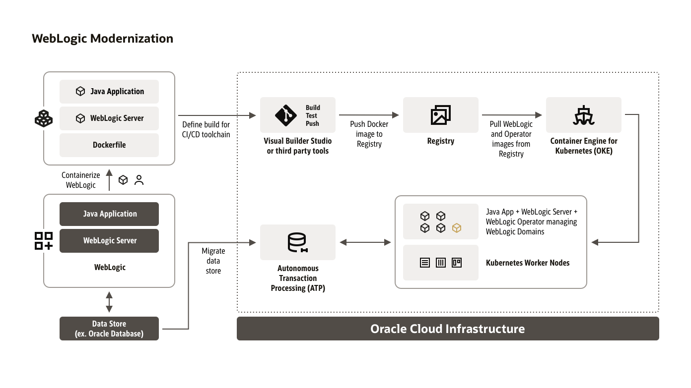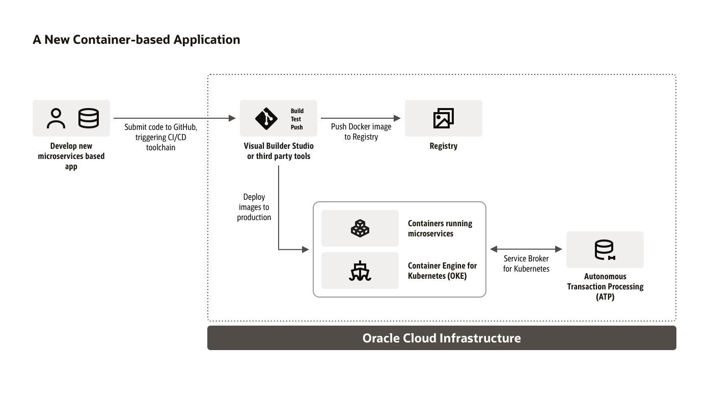 Deploy cloud native applications by using this Docker registry with Oracle Container Engine for Kubernetes (OKE), Oracle Visual Builder Studio, and Oracle Autonomous Transaction Processing.