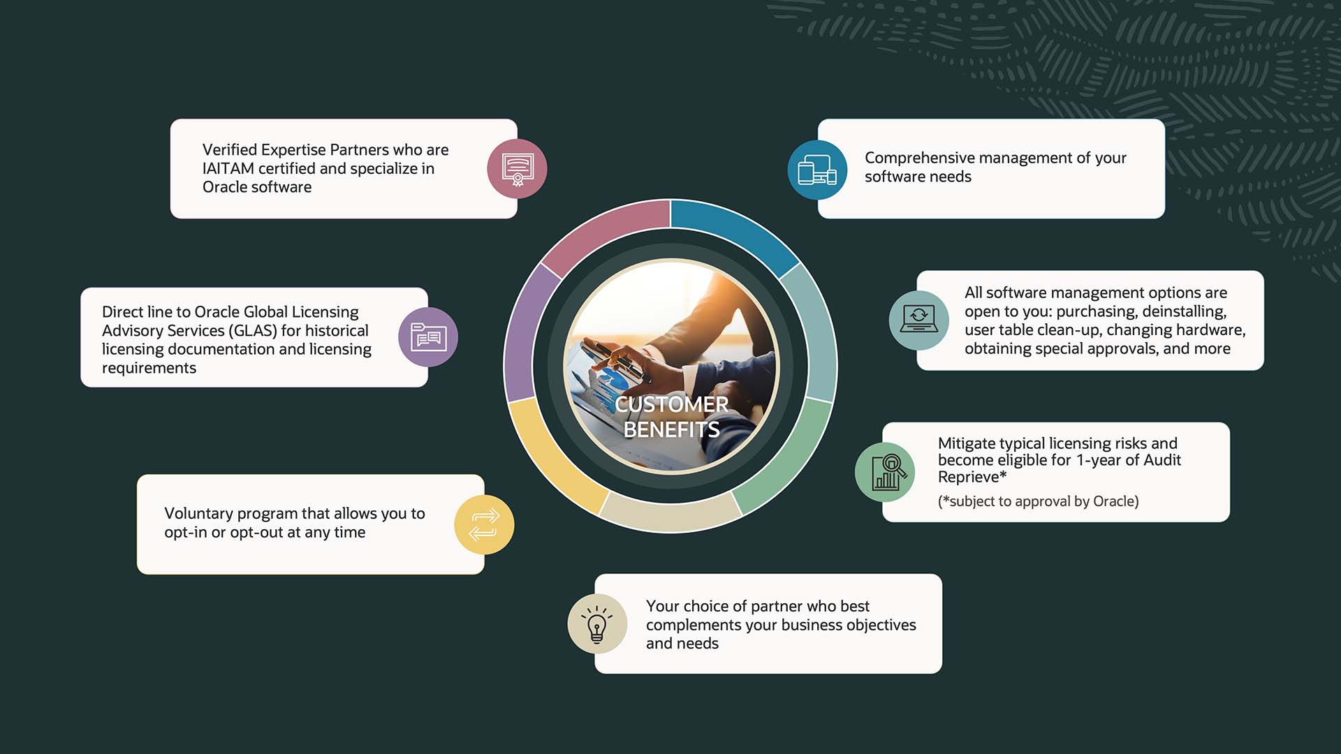Customers who elect to work with one of Oracle’s VSAM Partners will be working with a Partner team fully versed in the latest Oracle licensing and product knowledge.