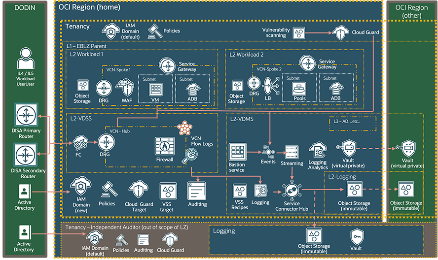 • Implement Oracle Cloud Native SCCA Landing Zone: Oracle’s landing zone wizard includes a pre-ATO’ed configuration to make moving DoD workloads to the cloud simple and efficient.