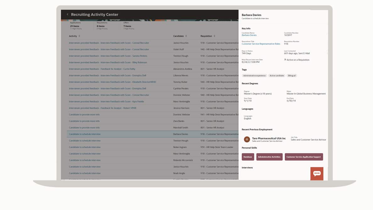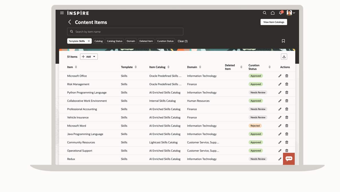 Jump-start your skills journey with Oracle’s extensive seeded skills library or integrate your existing skills or a third-party skills catalog. Enhance your skills library with multilanguage translation for 29 languages. Browse, add, and modify skills to further refine the library and make it your own.
