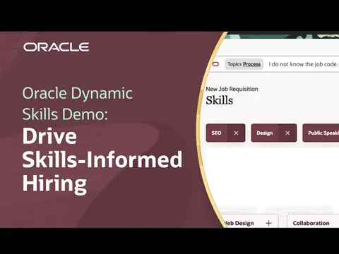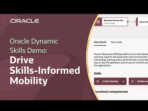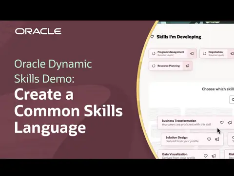 Skills have become the new currency of work, and skills-based talent management is critical for organizations that want to ensure future agility and continuous alignment between talent management and business strategies. Oracle Dynamic Skills empowers your organization with the intelligence, applications, and infrastructure you need in one cloud solution, allowing you to think big, start small, and move fast—no matter where you are on your skills journey.