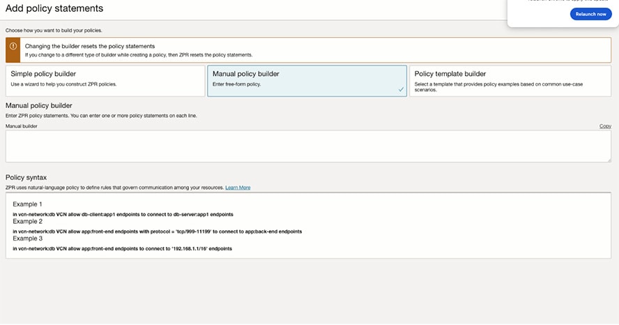 다음 옵션 중 하나를 사용해 OCI ZPR 정책을 작성할 수 있습니다.