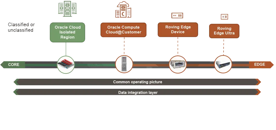 توفر السحابة الموزعة من Oracle خدمات سحابية آمنة من المقر الرئيس متعدد الجنسيات إلى الحافة التكتيكية، مما يتيح استمرار العمليات الحرجة للمهام متعددة المجالات في بيئات عرض النطاق الترددي المحدود والمعطل والمتقطع. تساعد البنية التحتية من Oracle Cloud(OCI) التي يثق بها قطاعي الدفاع والحكومة الشركات الناشئة في توفير وصول الولايات المتحدة وحلفائها إلى تكنولوجيا الدفاع الأكثر تقدُّمًا.