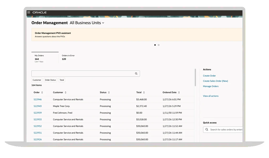 Order Management delivers on its ongoing themes of intelligent automation, friction-free interactions, and a highly productive user experience.