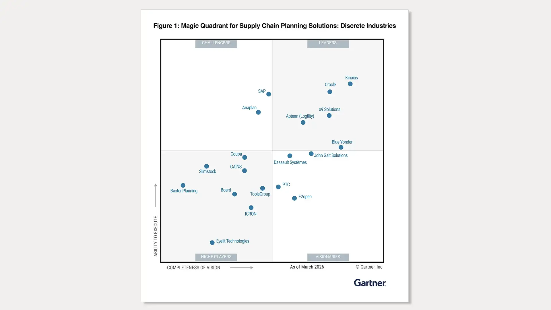 - Gartner, Magic Quadrant for Supply Chain Planning Solutions: Discrete Industries, Joe Graham, Pia Orup Lund, Buse Aras, Julia von Massow, Eva Dawkins, Jan Snoeckx, 18 March 2026.